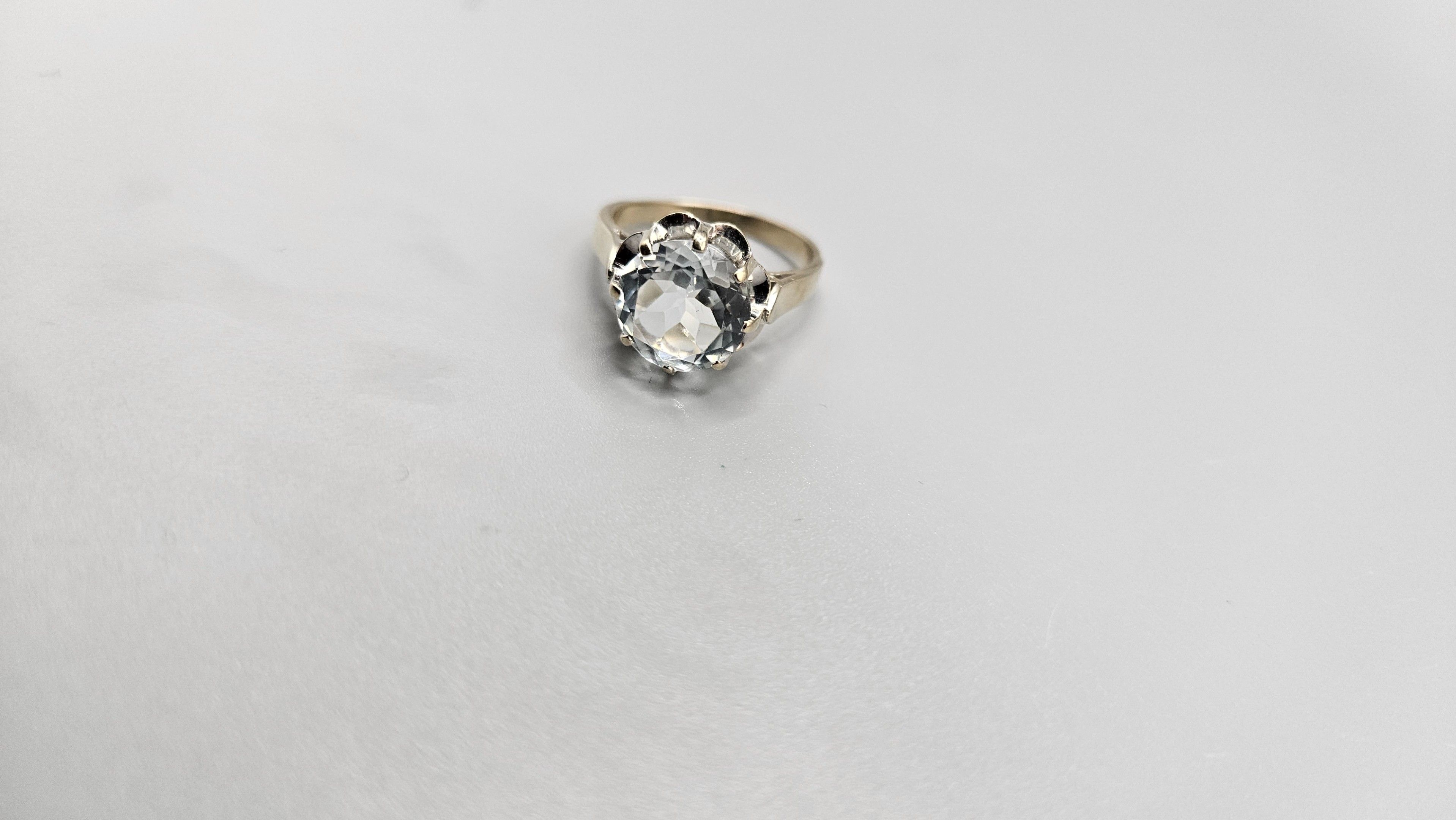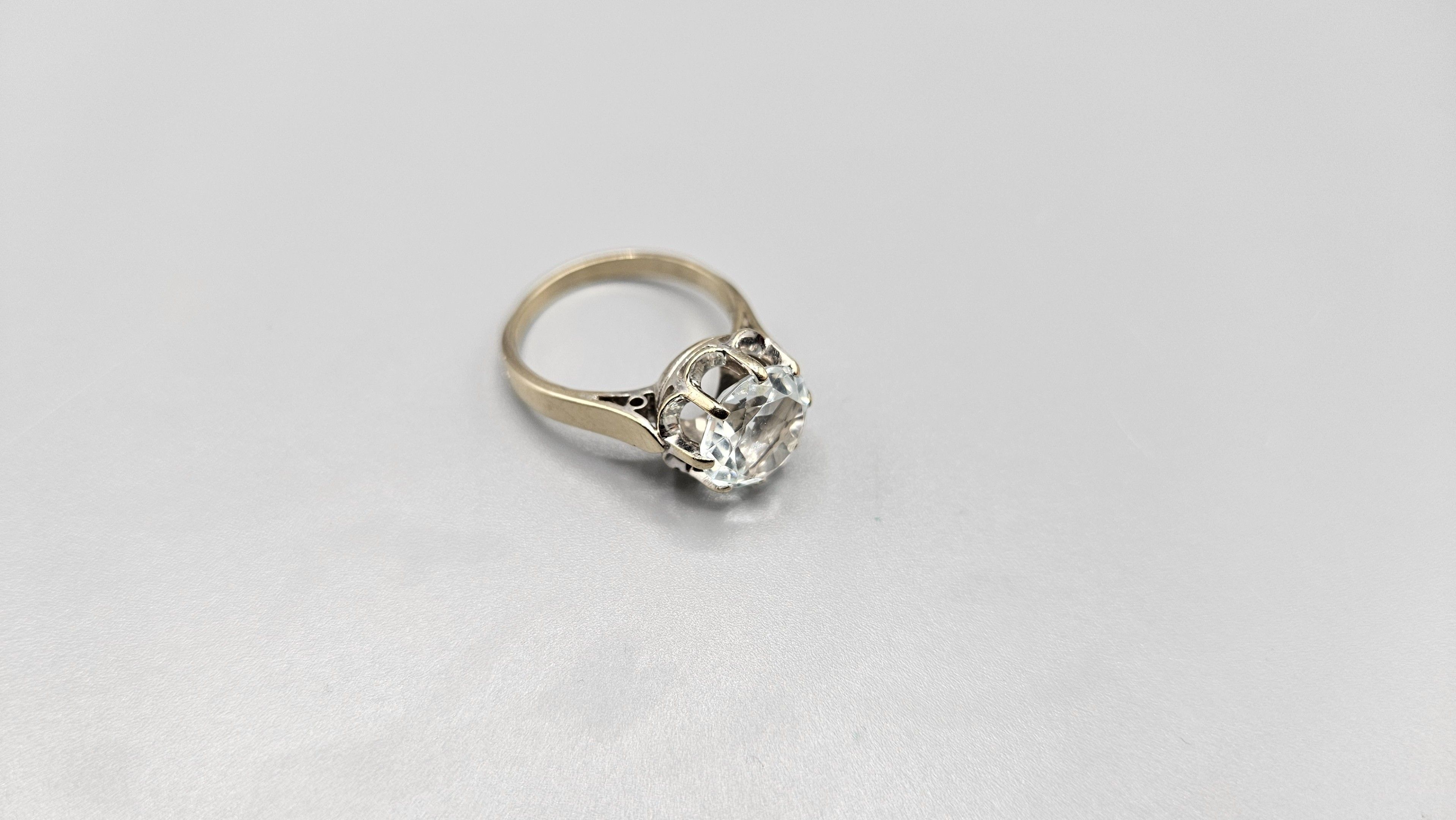 Bague en or gris (en règle) et verroterie imitation diamant. Tdd : 55. 5,2 gr bruts.