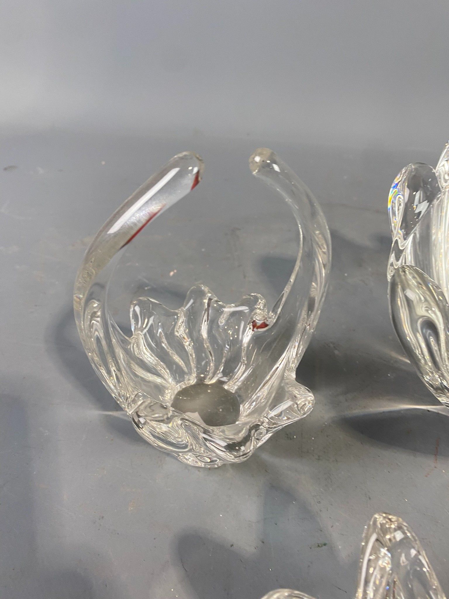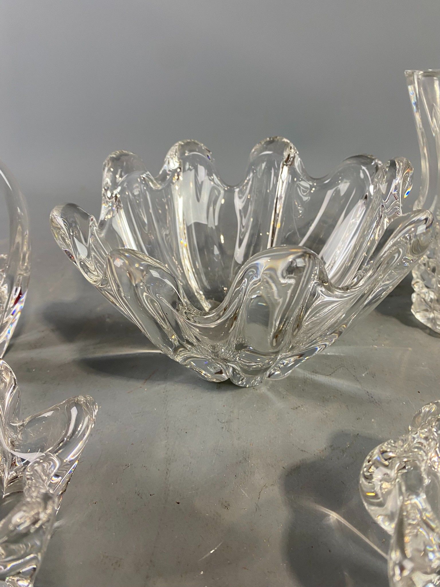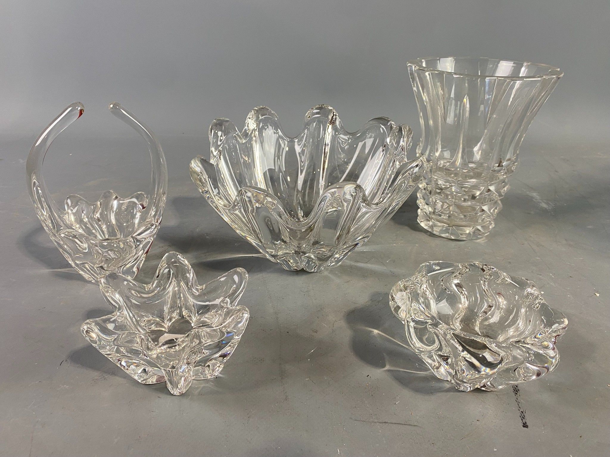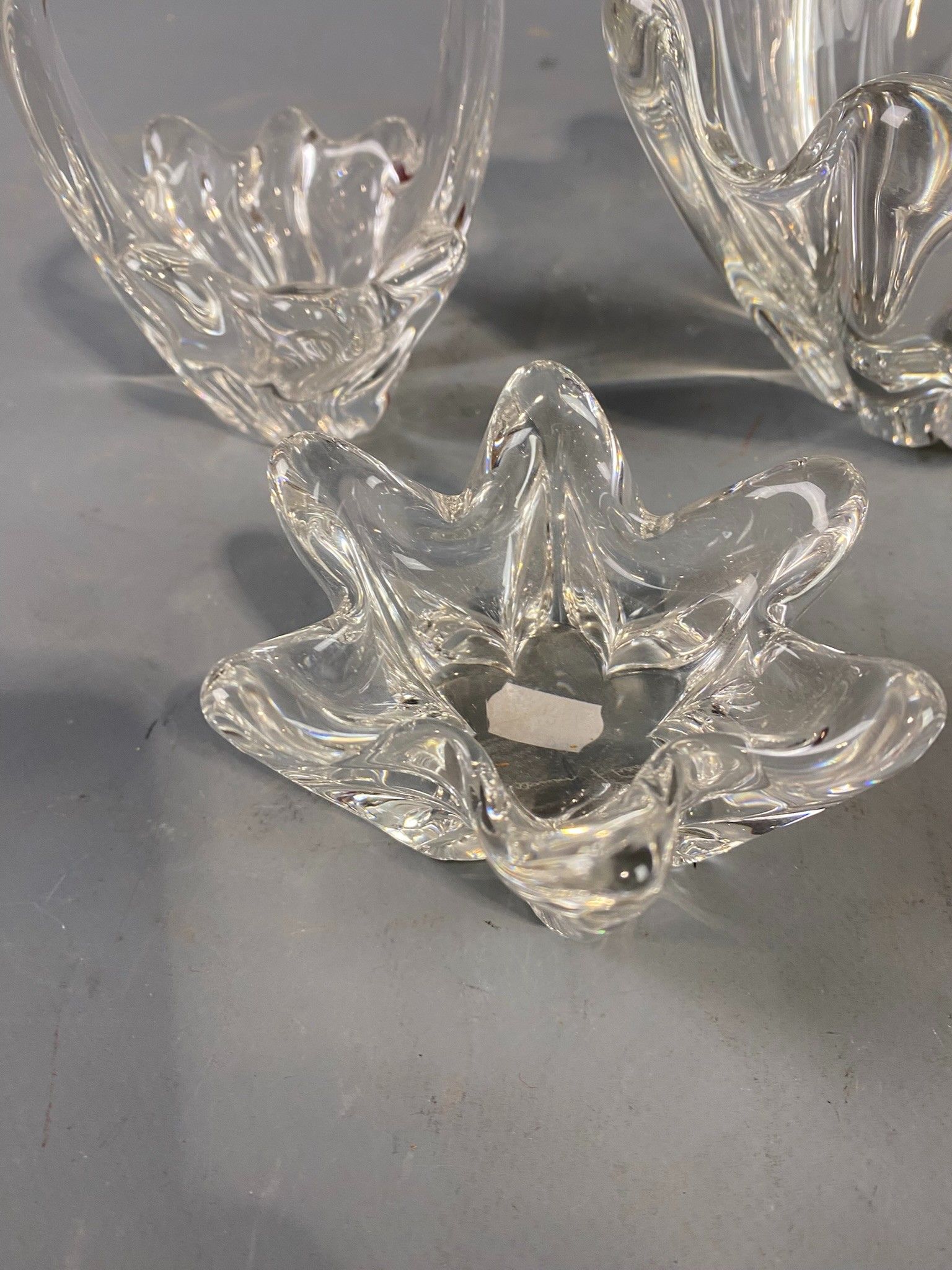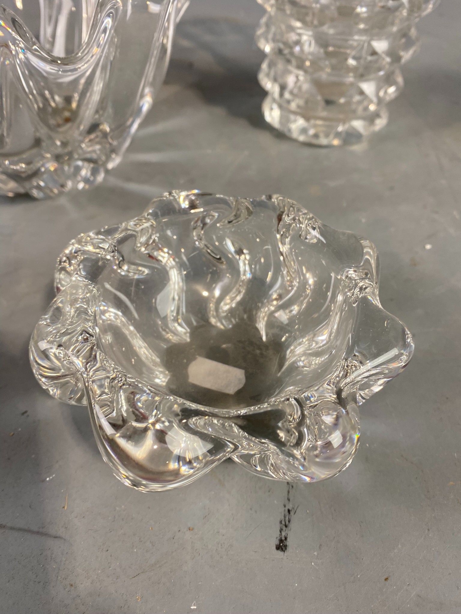 Lot de cristallerie des années 1960 comprenant un petit vase cornet de DAUM (h:16cm) et quatre coupelles motif vagues en cristale translucide étiré de différentes dimensions