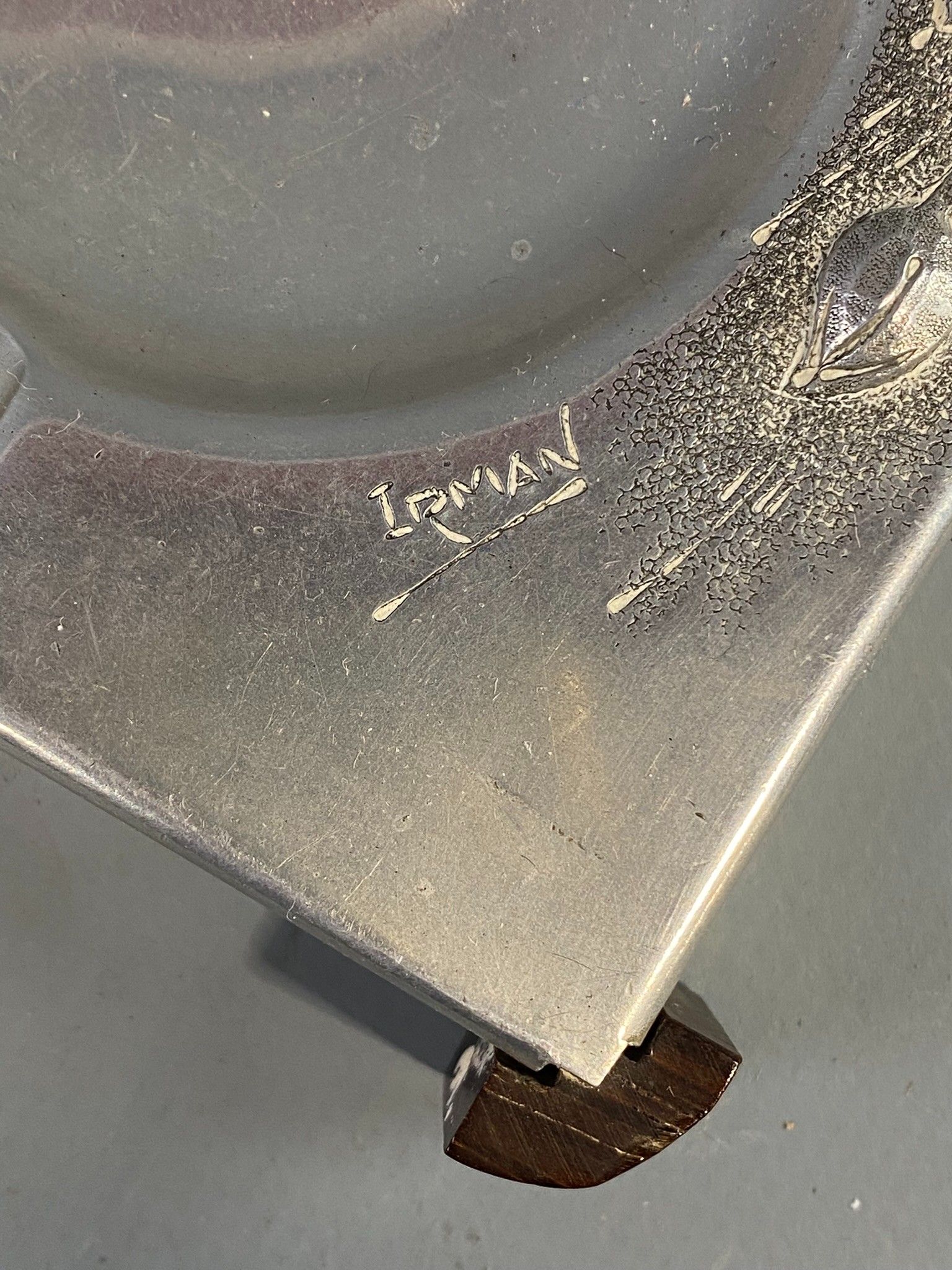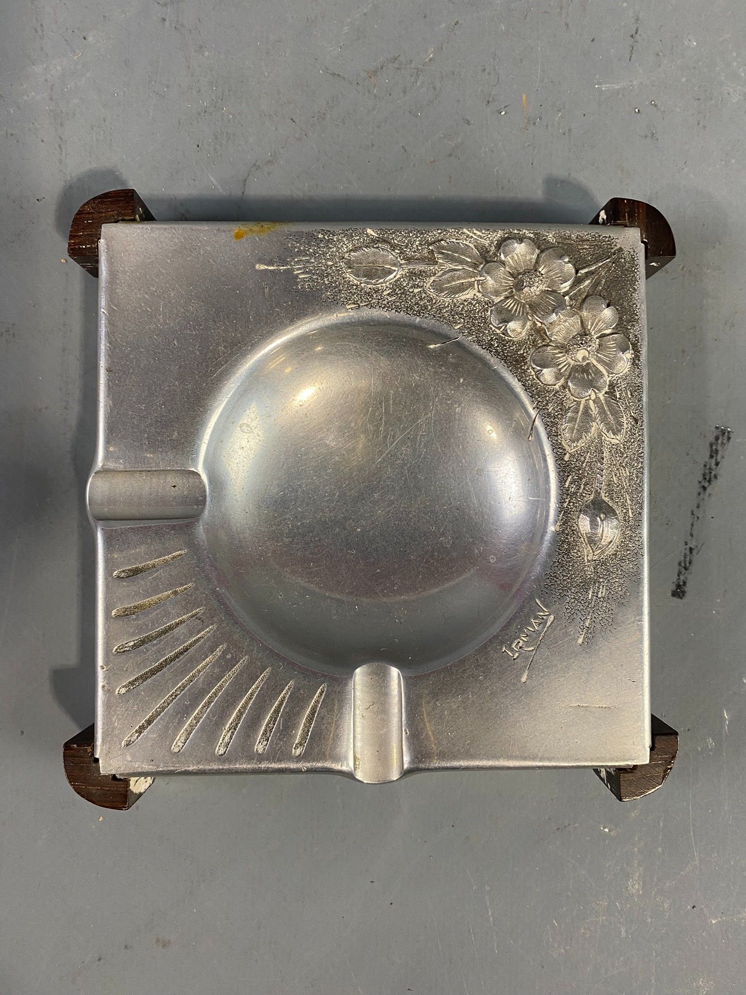 Cendrier carré des années 1930 gainé d'étain finenement grav…