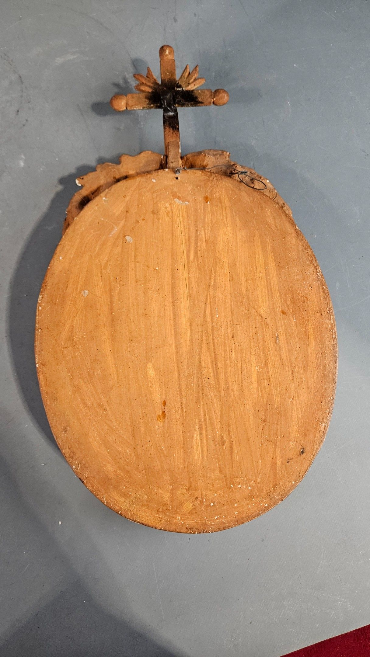 Reliquaire ovale en bois doré XIXème formant vitrine et comp…