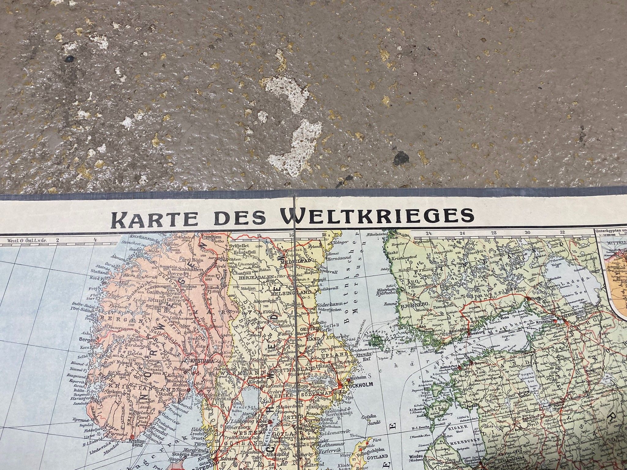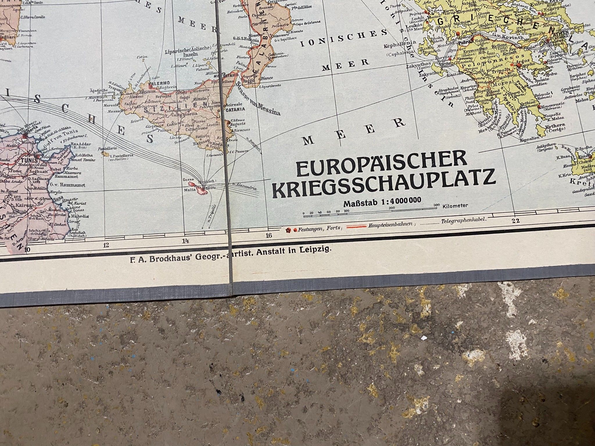 Une carte du continent européen colorisé et entoilé edition allemande vers 1900 par BROCKHAUS à Leipzig. 87 x 112 cm