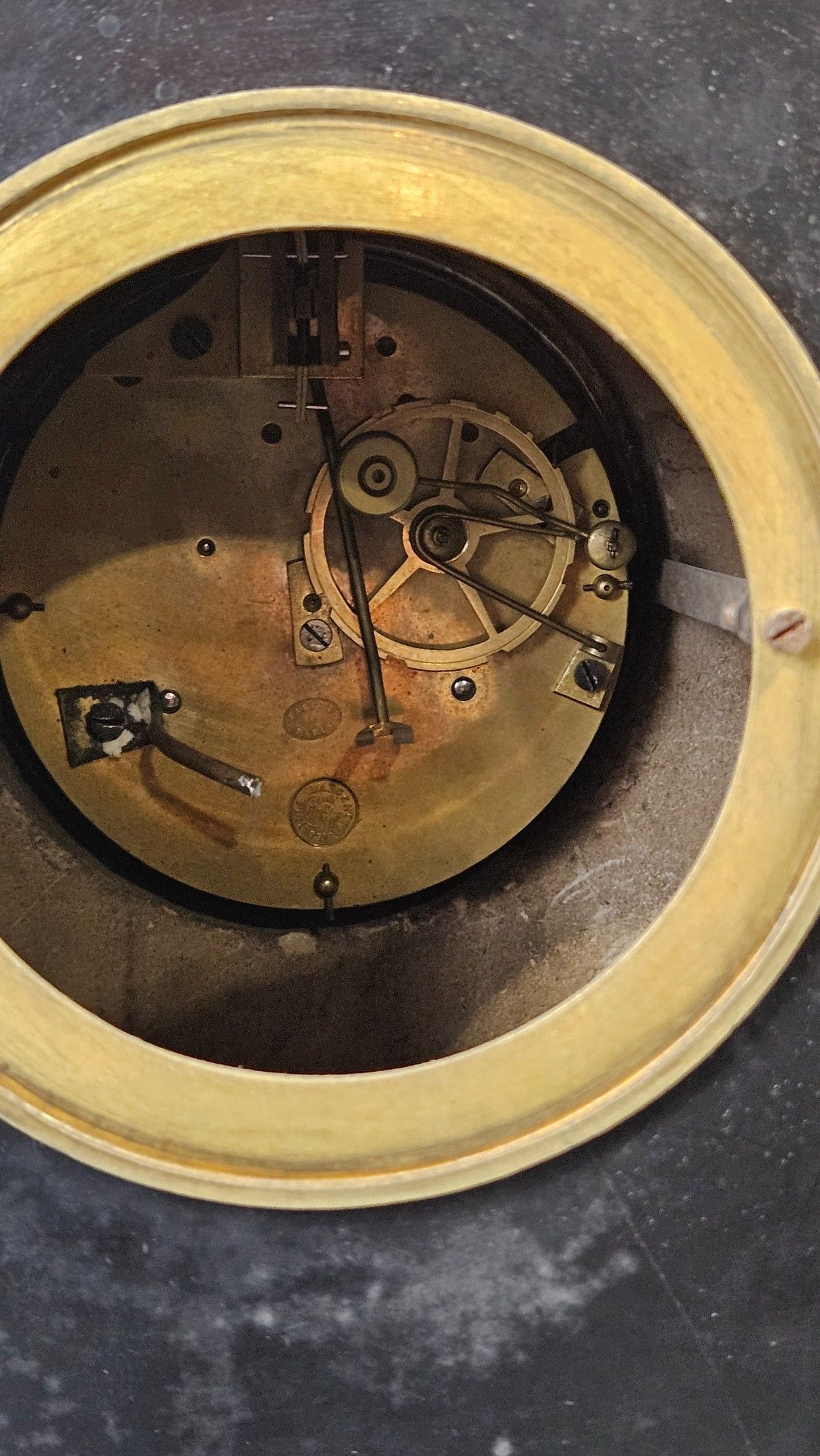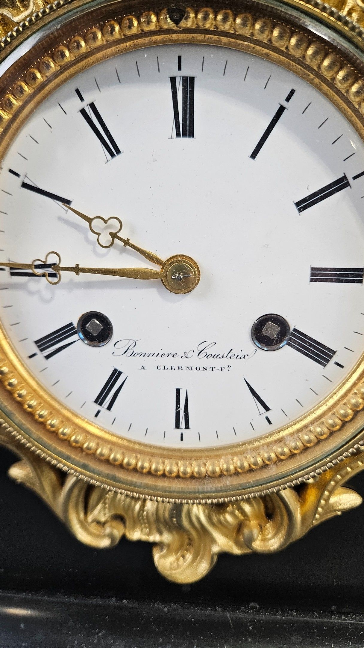 Pendule borne en marbre noir et bronze patiné de la fin du X…