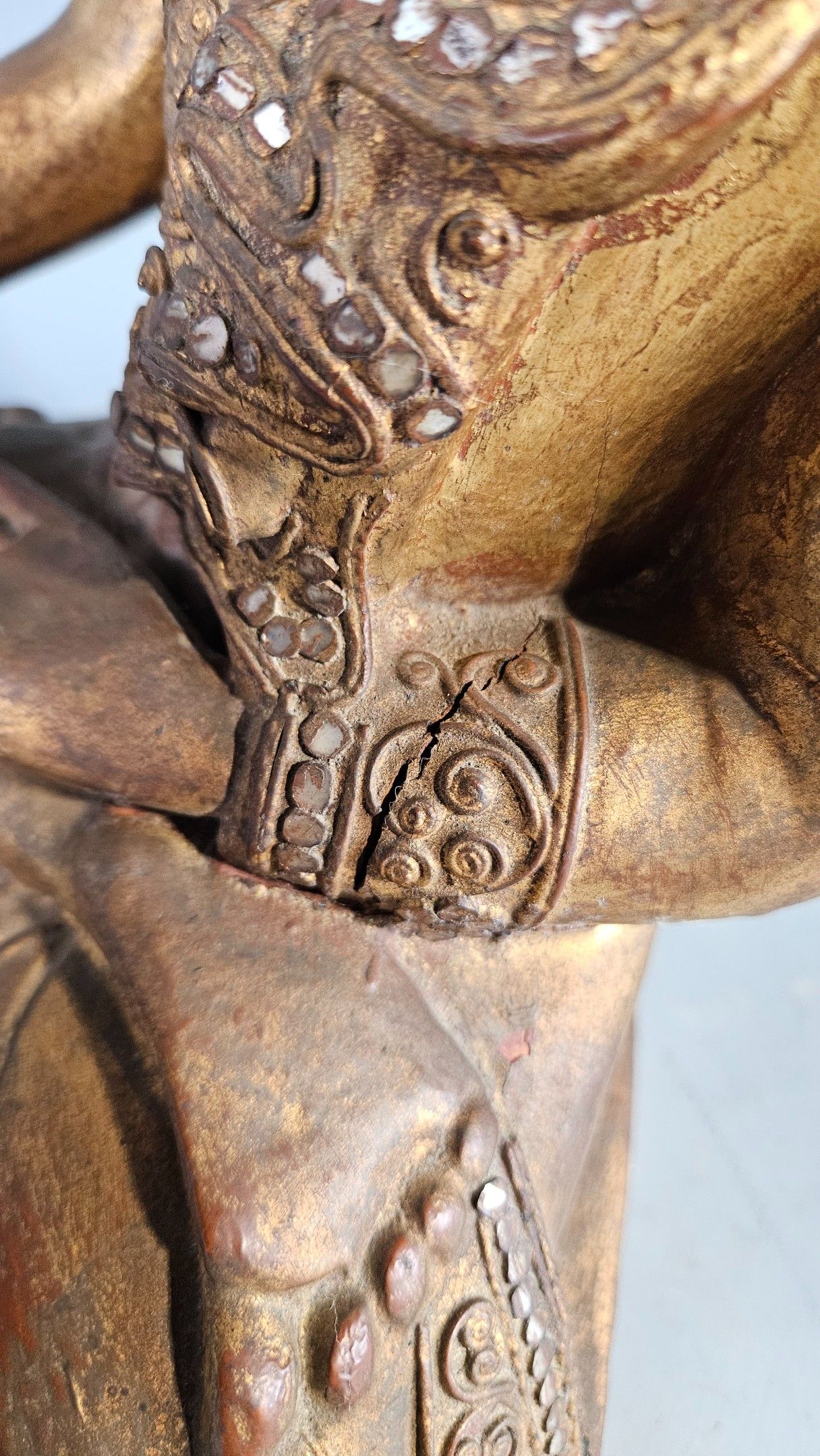 Bouddha de style Thaï en bois doré incrusté de verroterie as…