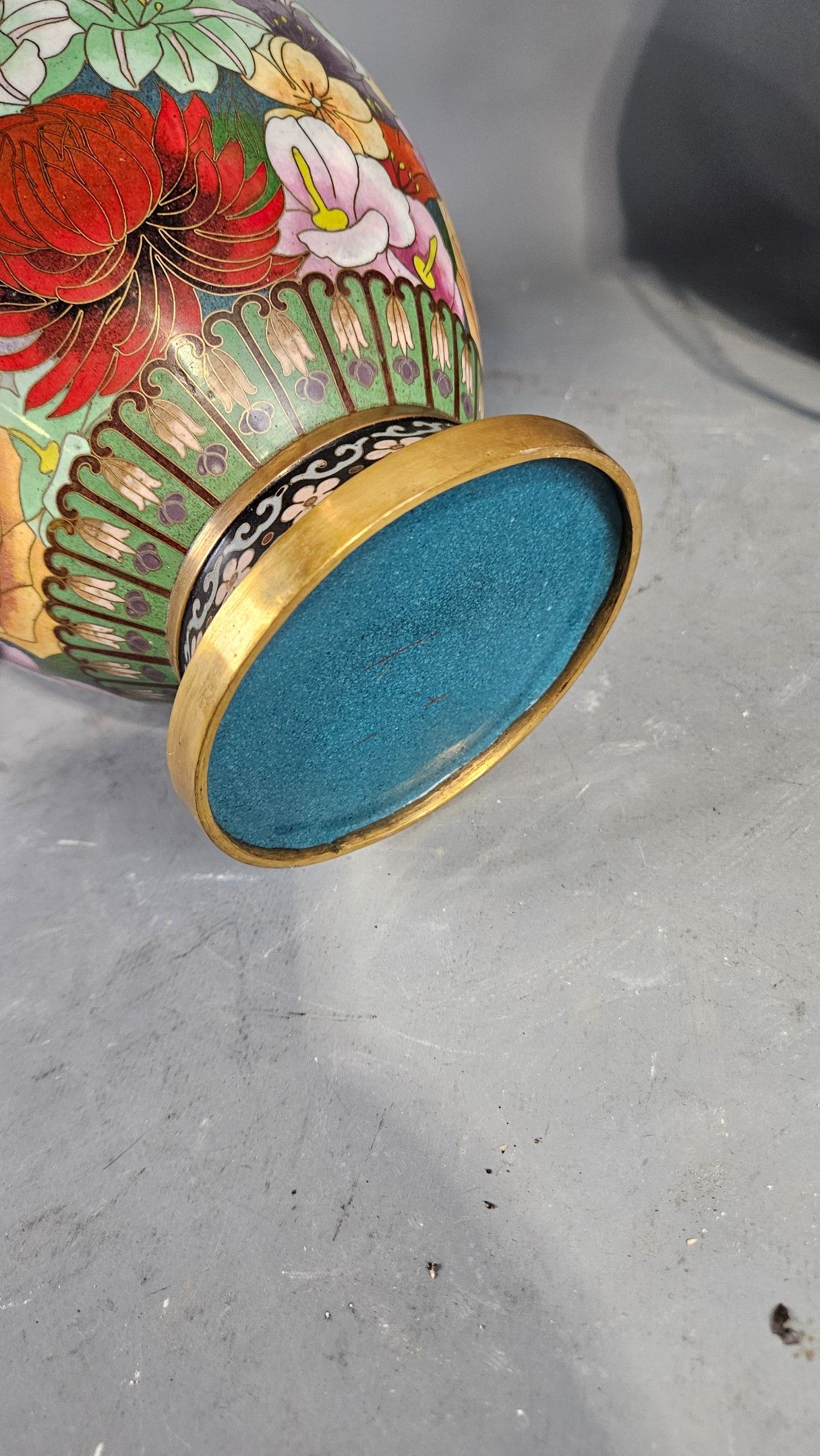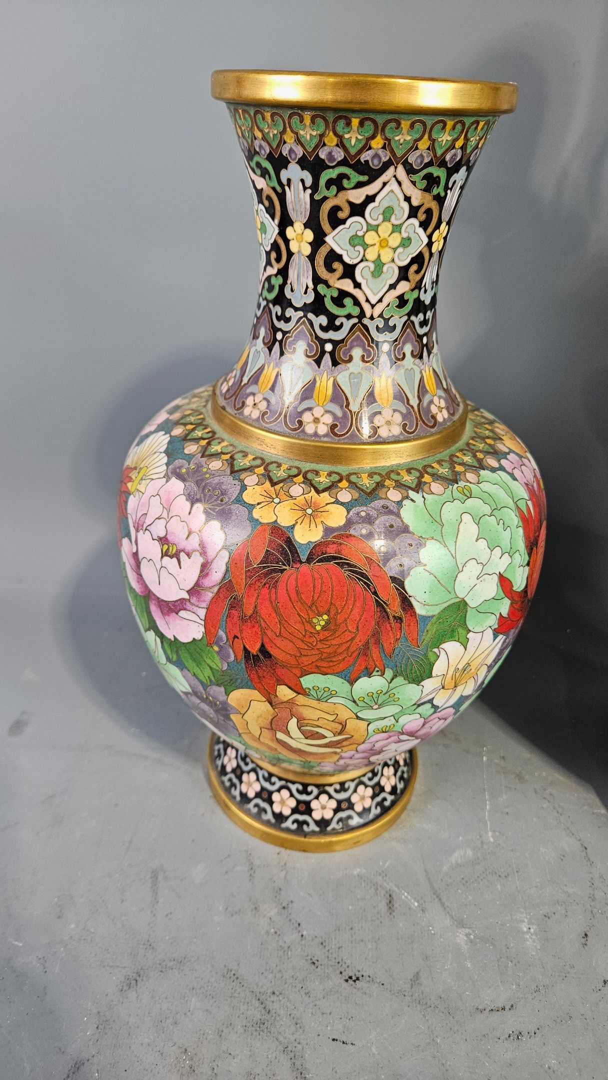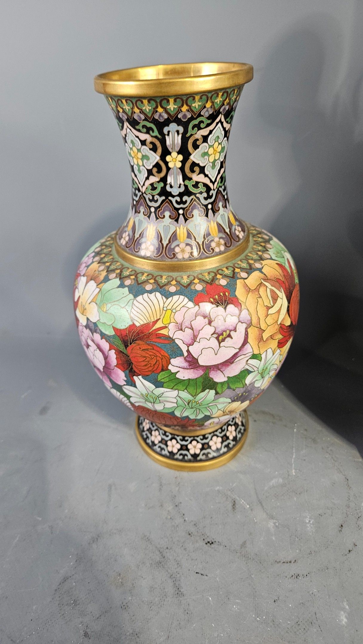 Deux vases polychromes chinois, l’un en bronze cloisonné déc…