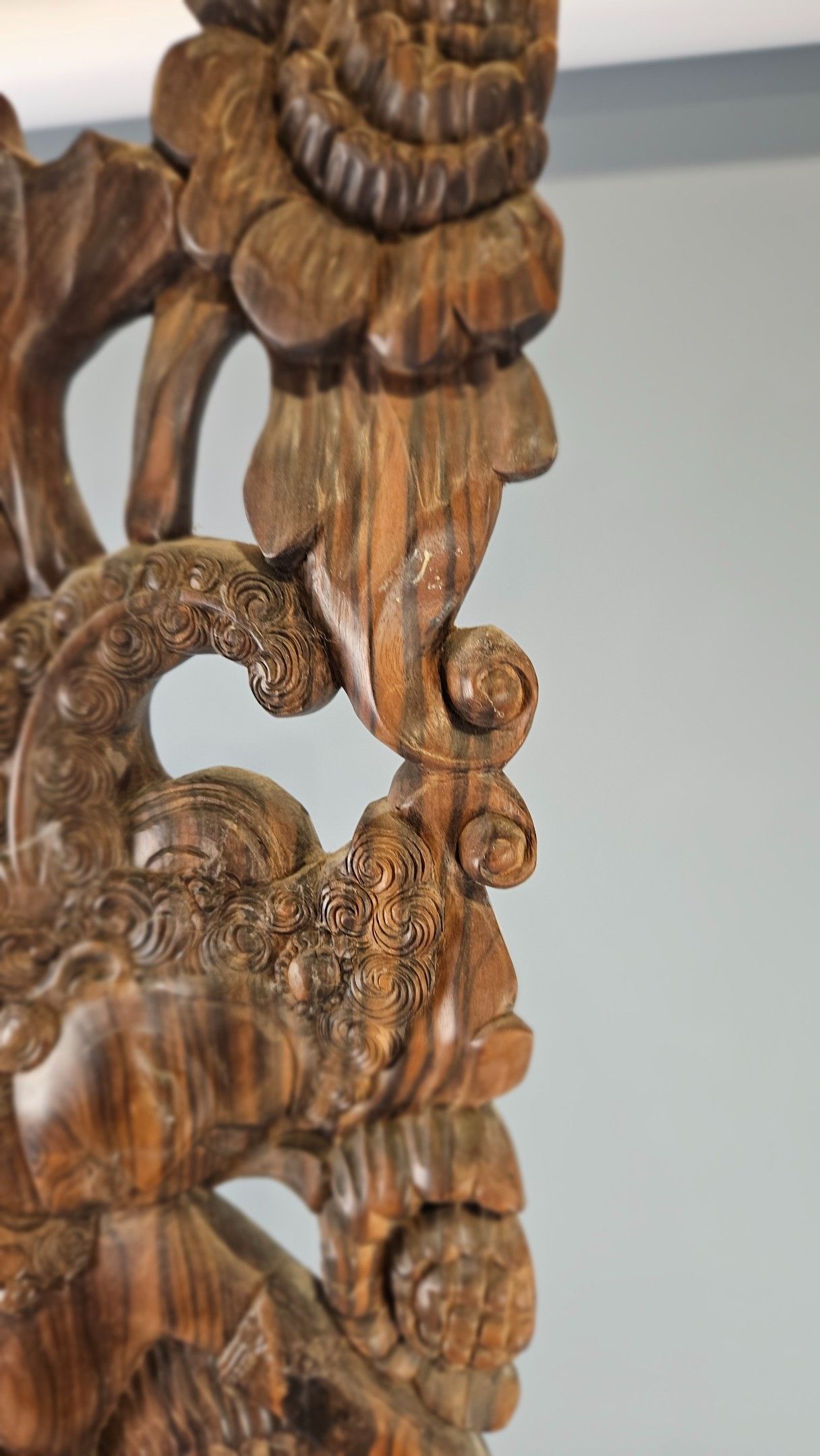 Grand panneau en bois sculpté de Bali figurant une danseuse …