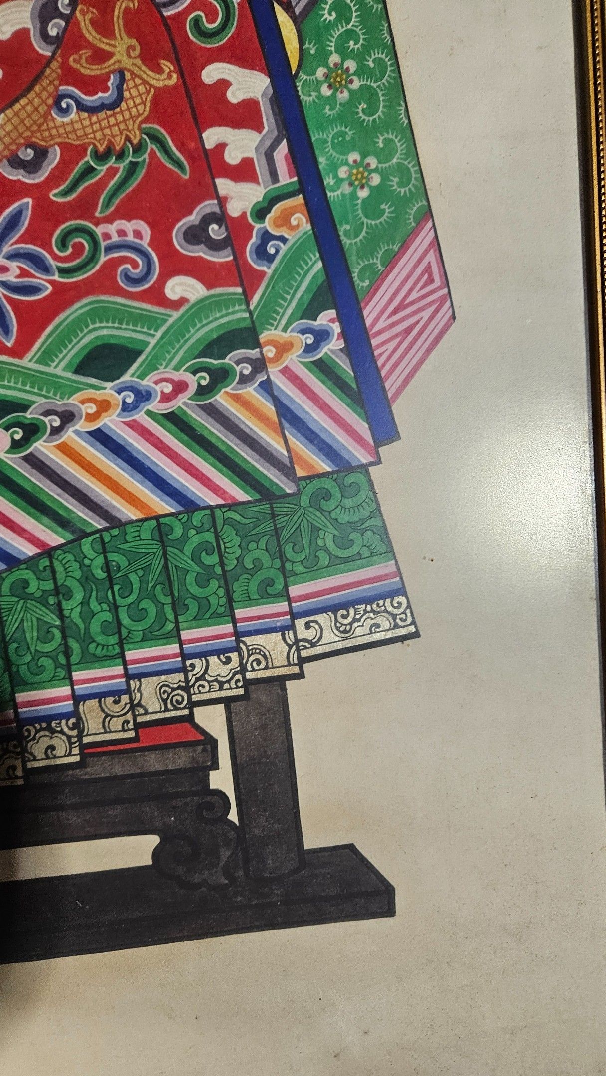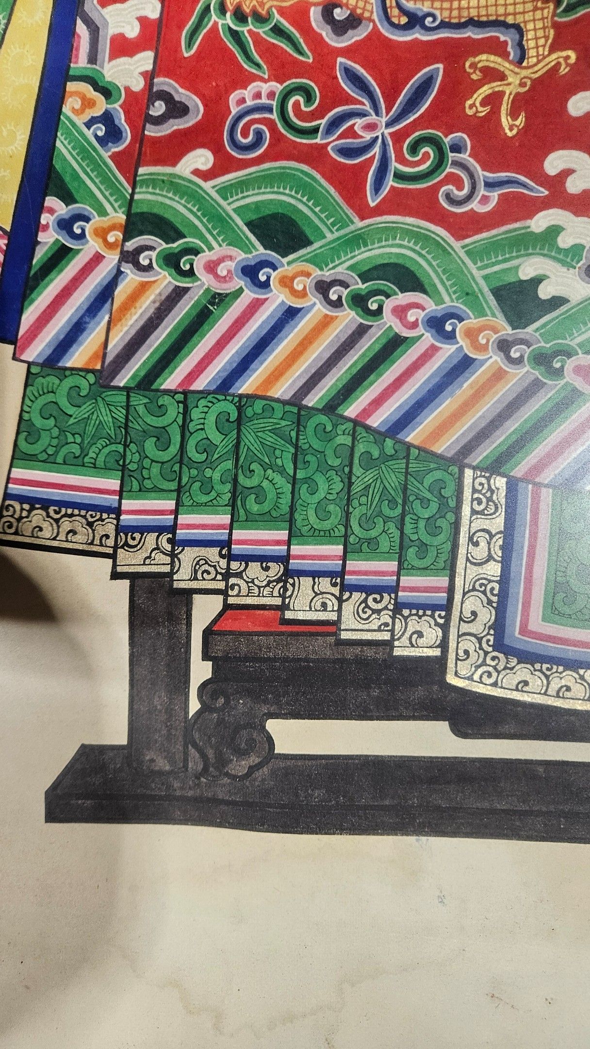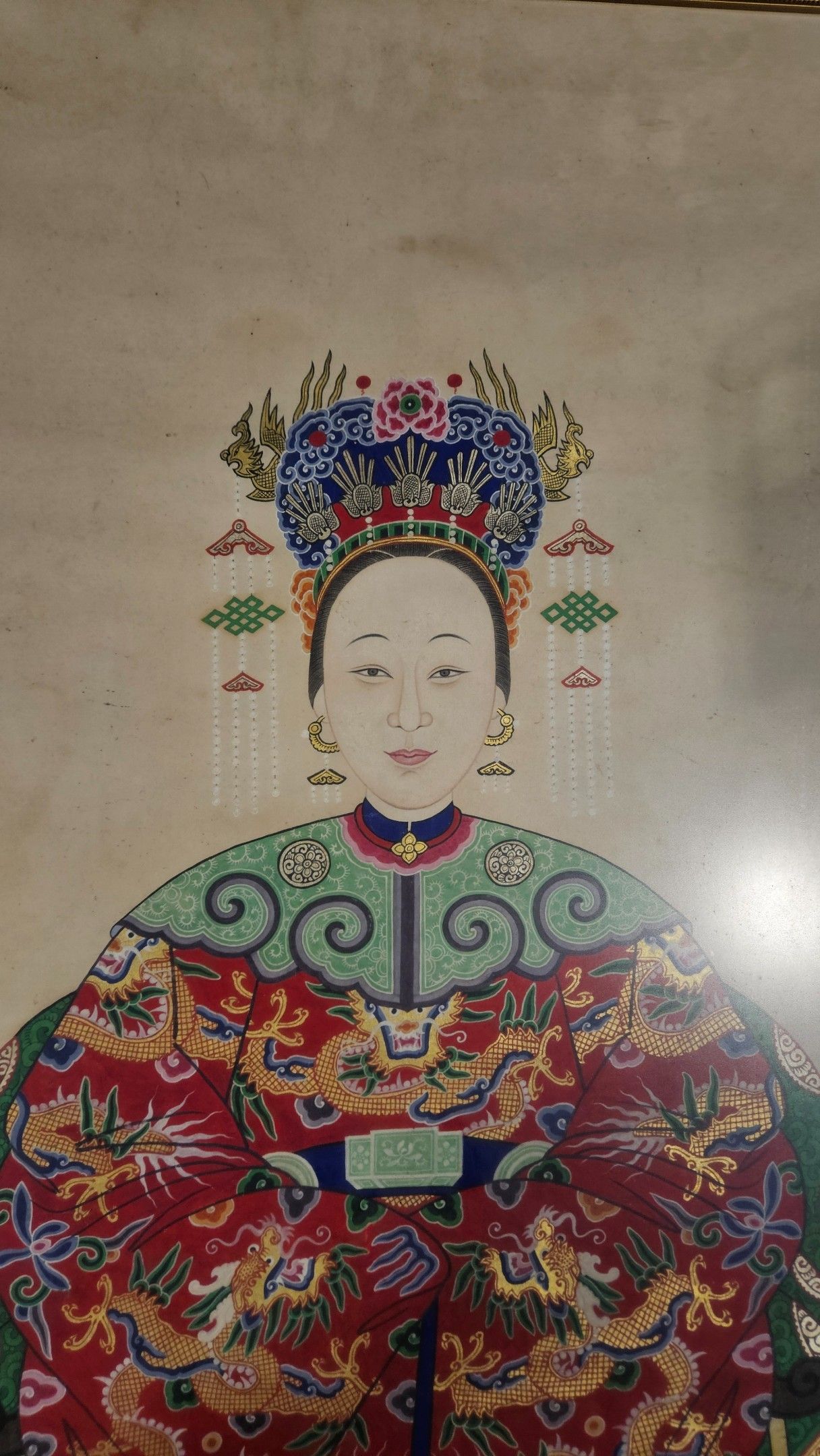 Grande gouache d’Extrême-Orient représentant une dame de cour trônant. 99 x 50 cm à vue. Légères pliures et jaunissures