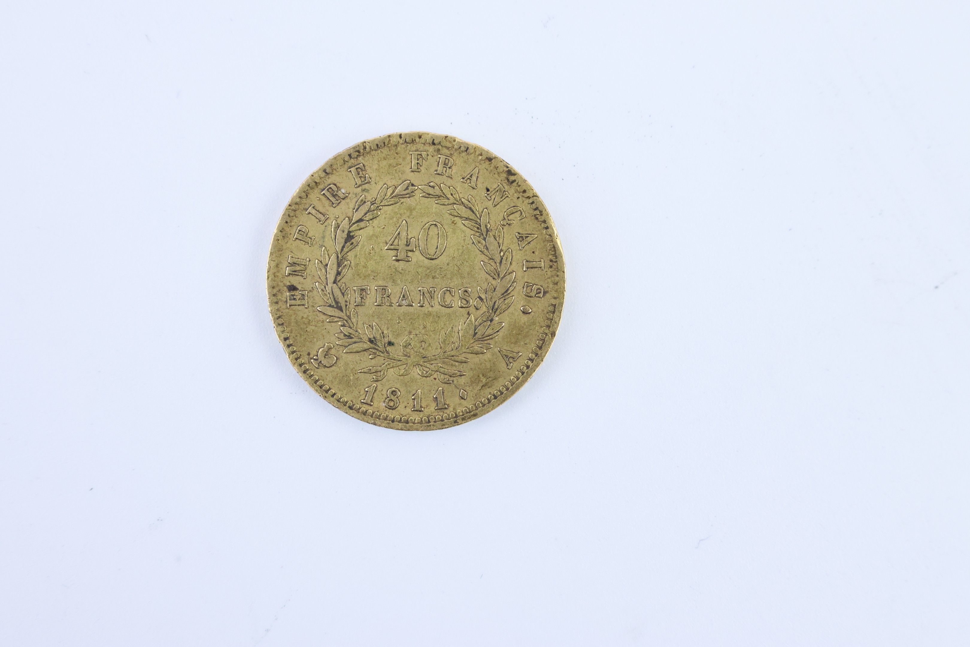 Sur désignation : Pièce de 40 francs or Napoléon Ier 1811 Paris, 12,9 g - non visible à l'étude, au coffre de la banque