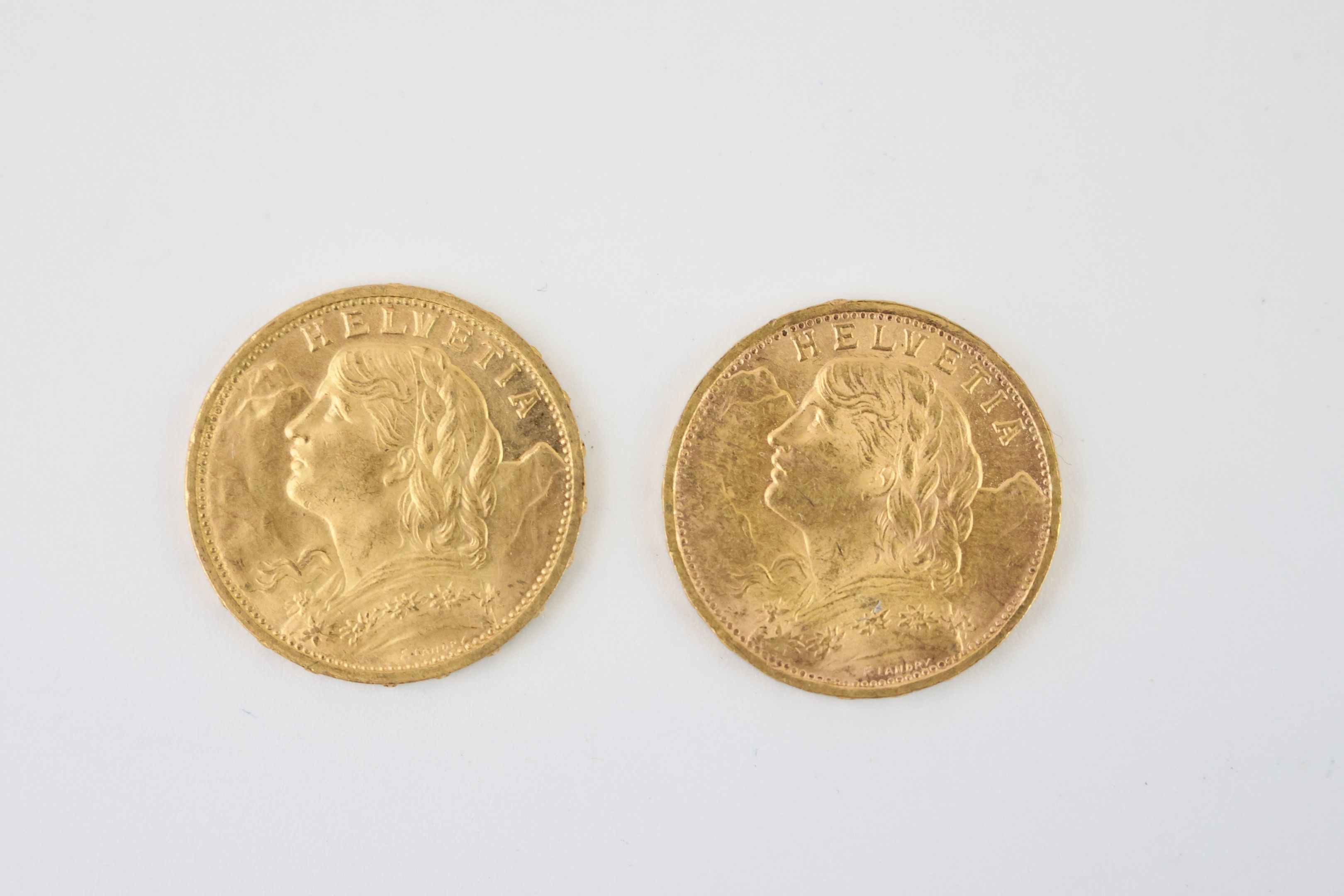 Sur désignation : Lot de 2 pièces de 20 francs or Suisse Hel…