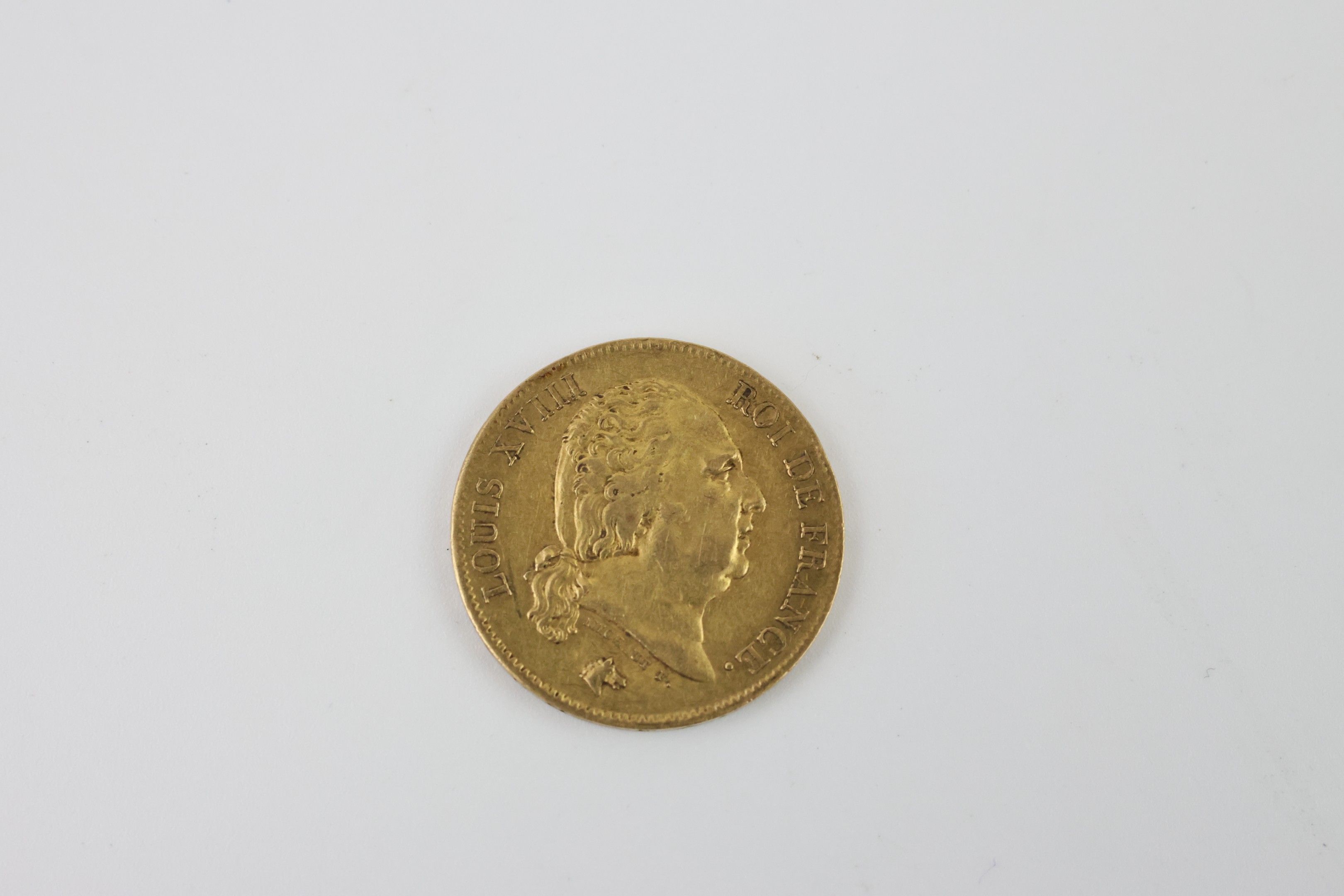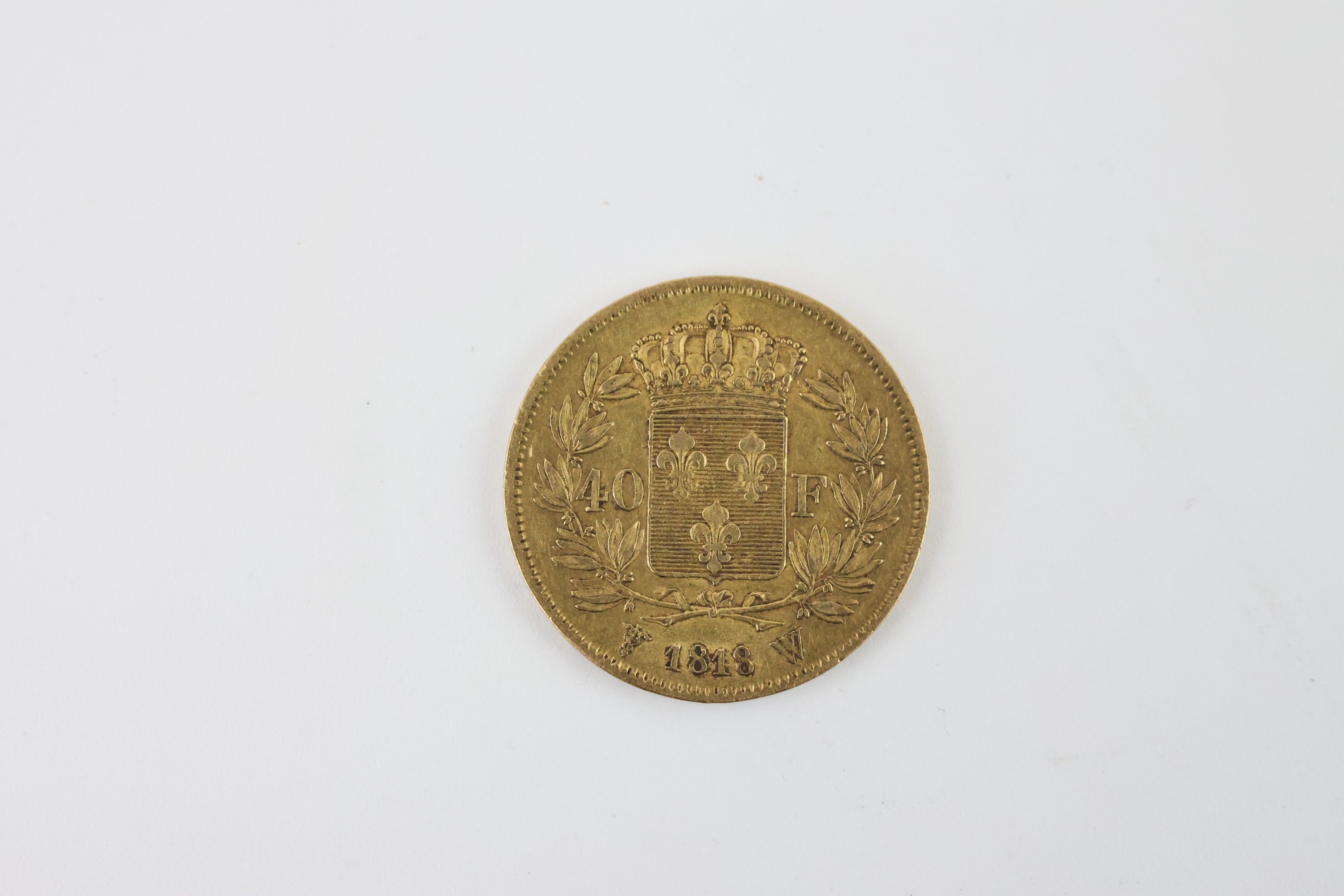 Sur désignation : Pièce de 40 francs or Louis XVIII 1818 W Lille, 12,9 g - non visible à l'étude, au coffre de la banque