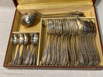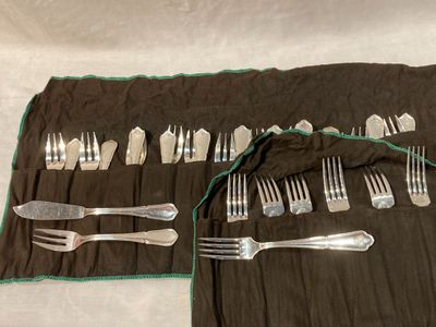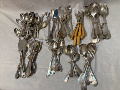 Partie de ménagère en métal argenté comprenant 12 couverts à…