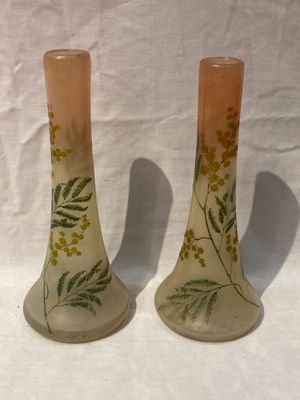 Paire de vases en verre à motifs de feuilles, ép début XXème…