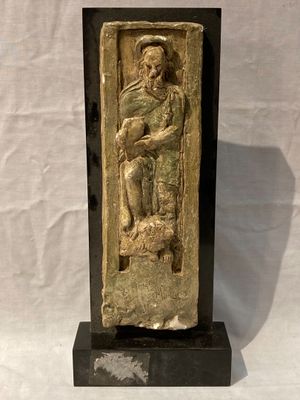 Plaque en plâtre patiné sur support en marbre figurant St Ma…