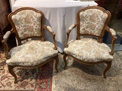 Commode en bois marqueté de style Louis XV (plateau accident…