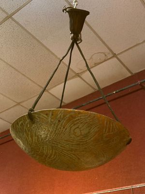 Suspension en verre gravé à l'acide à décor de plumes de pao…