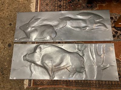 Paire de plaques en zinc ou plomb à décor de lièvres et de s…
