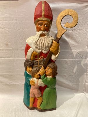 G. SZEWCZYK : Statue de Saint Nicolas en bois polychrome, H …