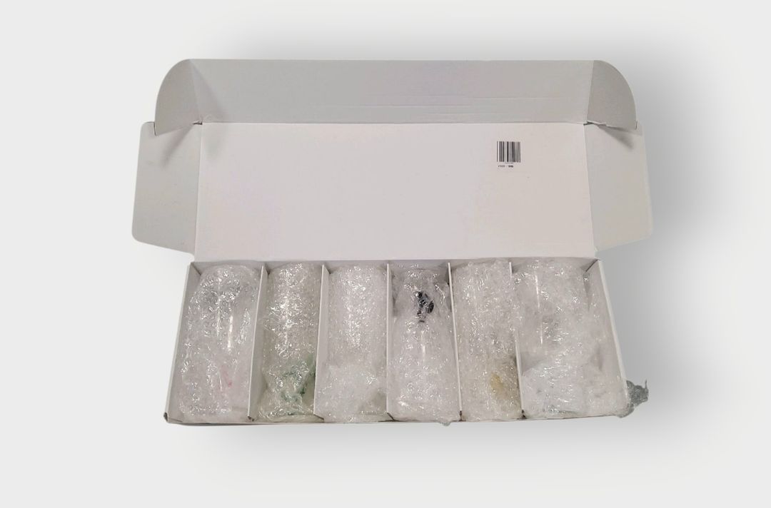 DE CASTELBAJAC Jean-Charles pour Waww la table. Coffret 6 Flutes en verre borosilicate modèle "Les Coeuriatides". H. 19 cm. Diamètre. 8 cm. - TVA Récupérable - Expédition possible sur palette