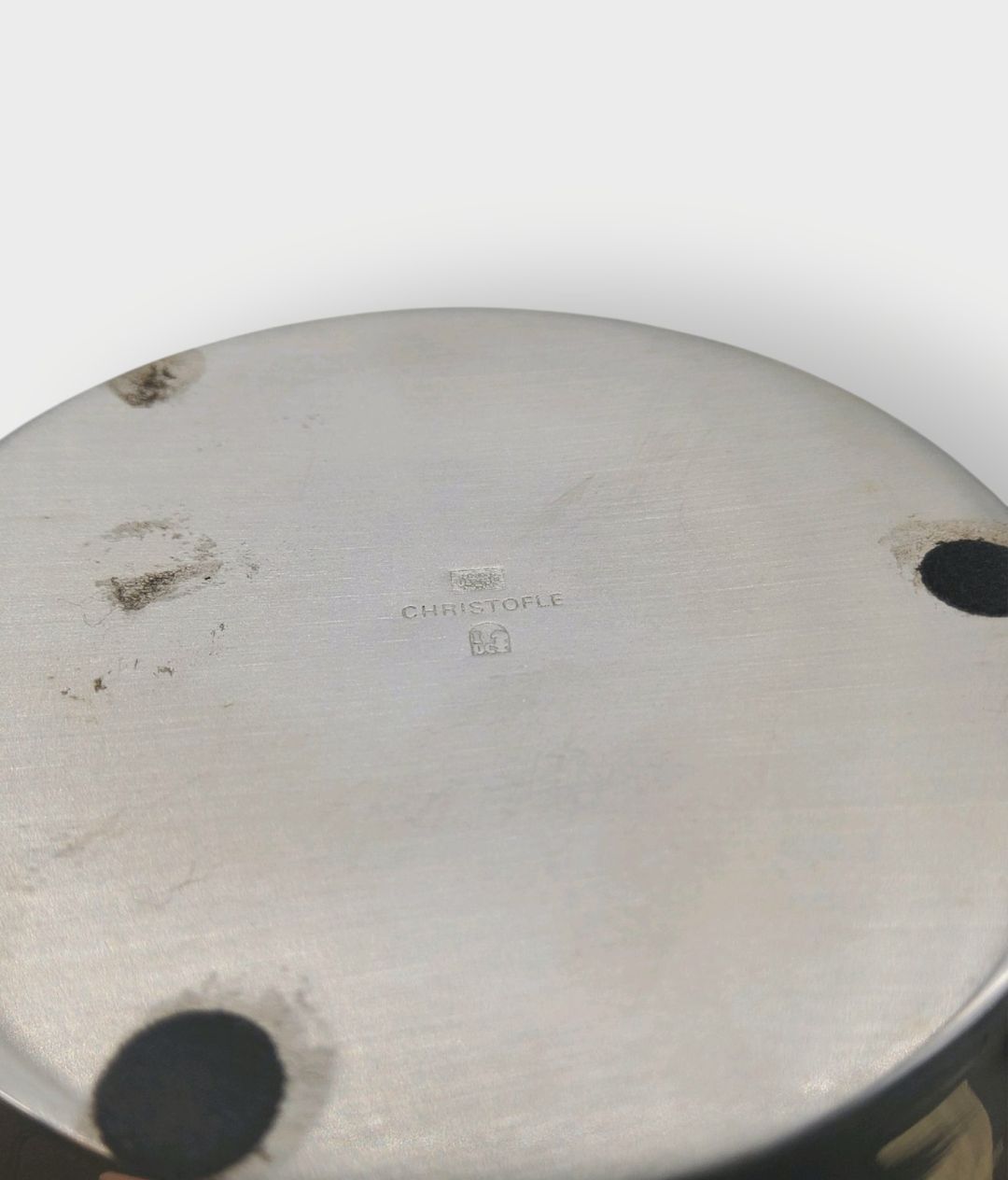 CHRISTOFLE. Service à thé en métal argenté comprenant : - Verseuse - Pot à lait - Sucrier. On y joint deux housses. - Ce lot chez vous partout en France métropolitaine à partir de 12,24 € - Ce lot chez vous partout en Europe à partir de 18,00 €