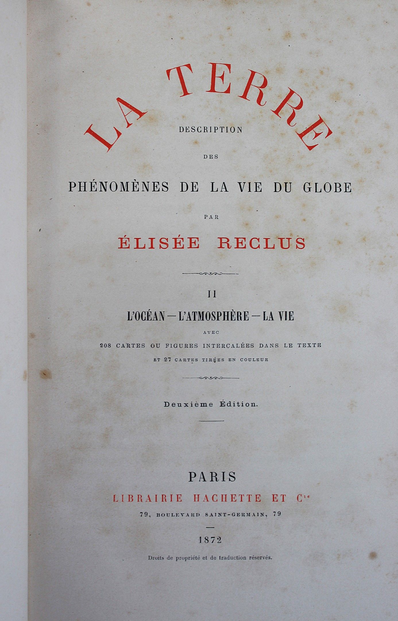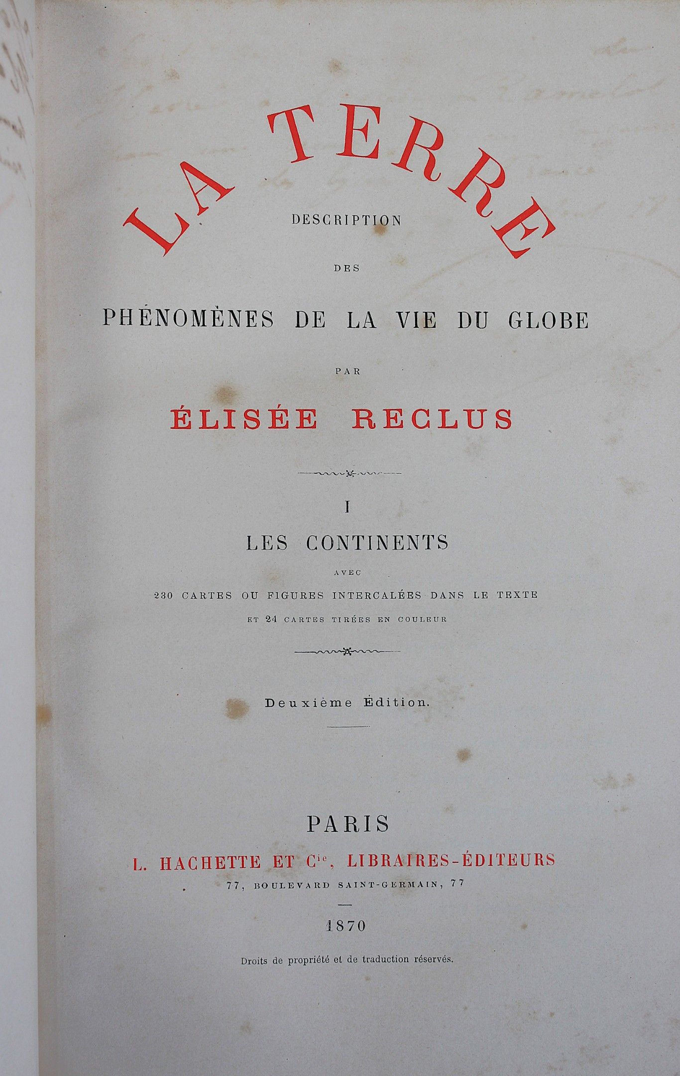 Elysée RECLUS, "La terre", 2 tomes "les continents" et "L'oc…