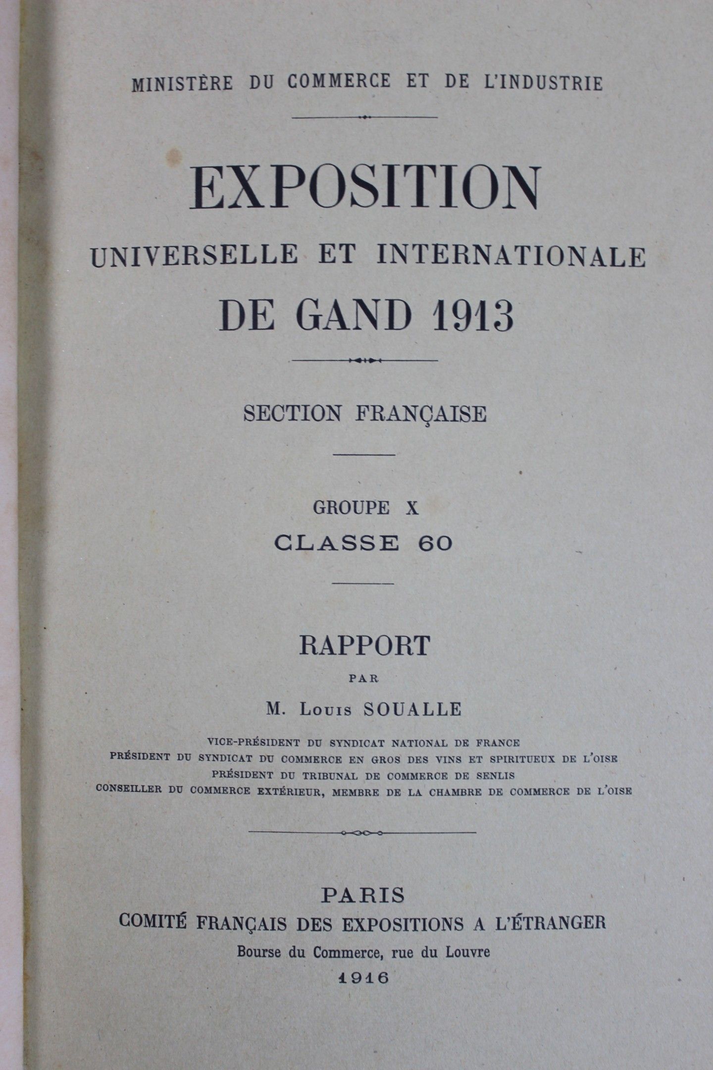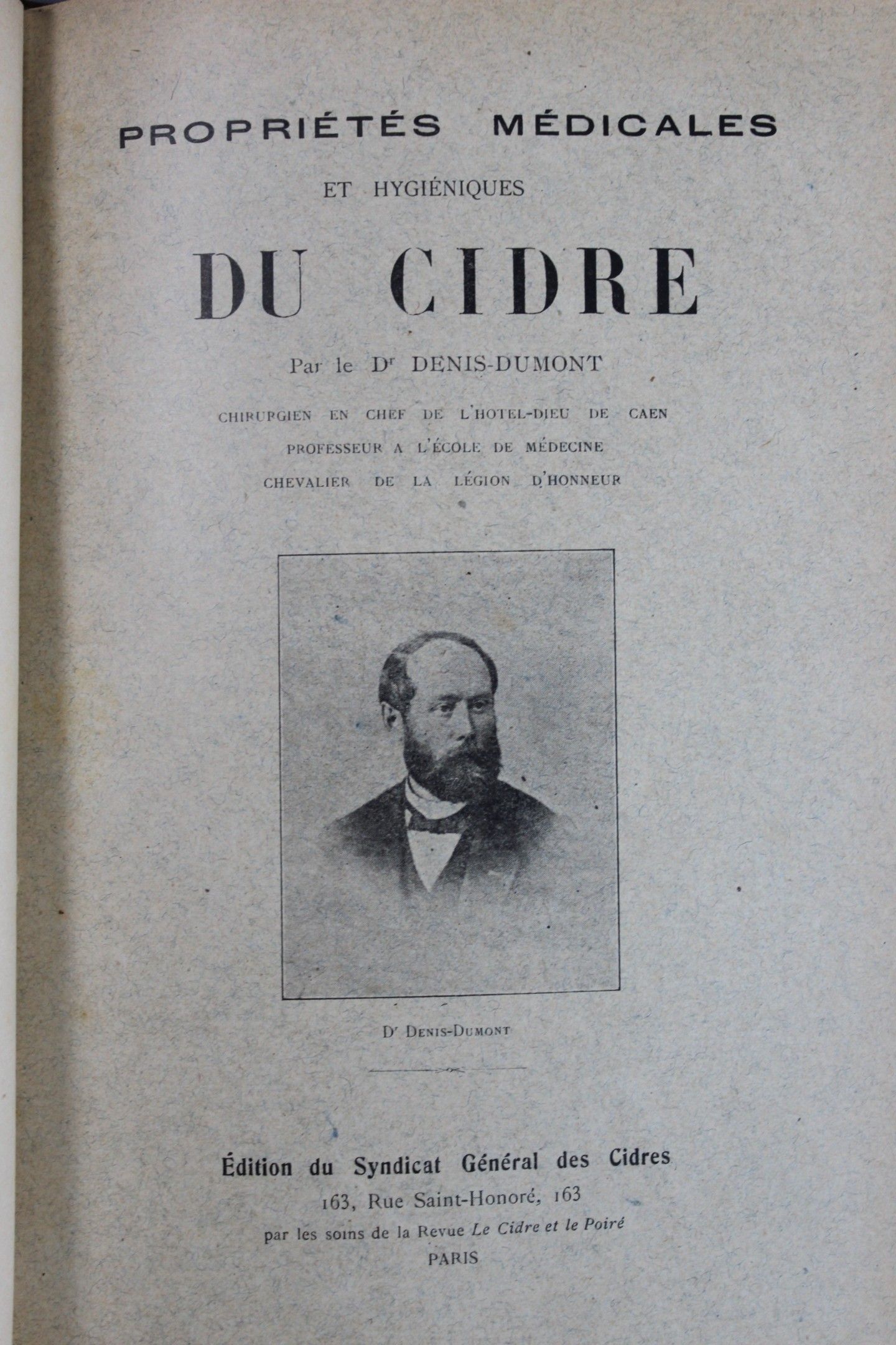 Dr DENIS-DUMONT, "Propriété médicales et hygièniques", belle reliure cuir dorée aux petits fers, 1914. Joint "Exposition universelle et internationale de Gand 1913", section française avec rapport de Louis Soualle sur les vins, cidres et liqueurs.