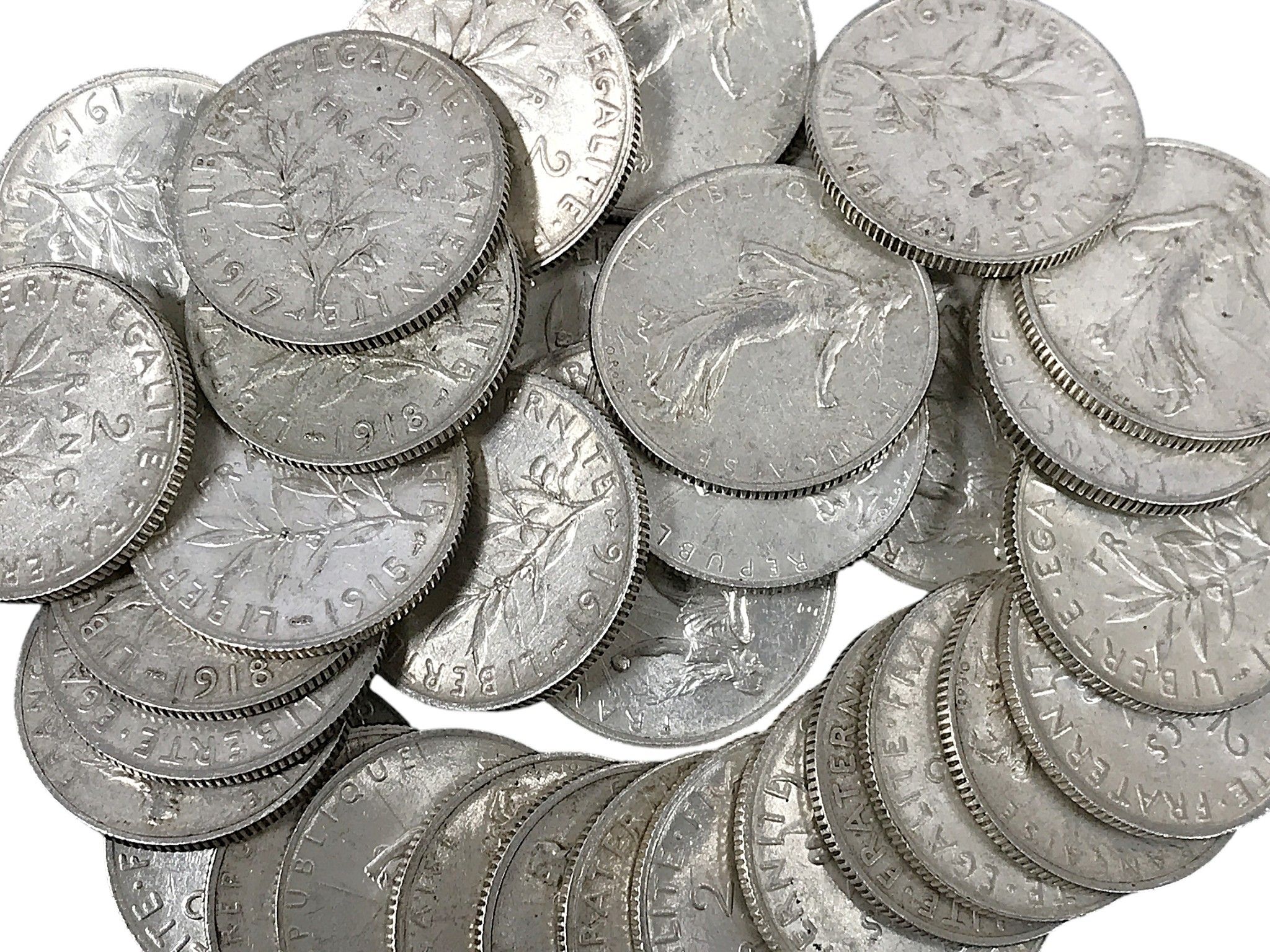 Ensemble comprenant 35 PIECES de 2 FRANCS SEMEUSE en argent, années 1902 à 1919.