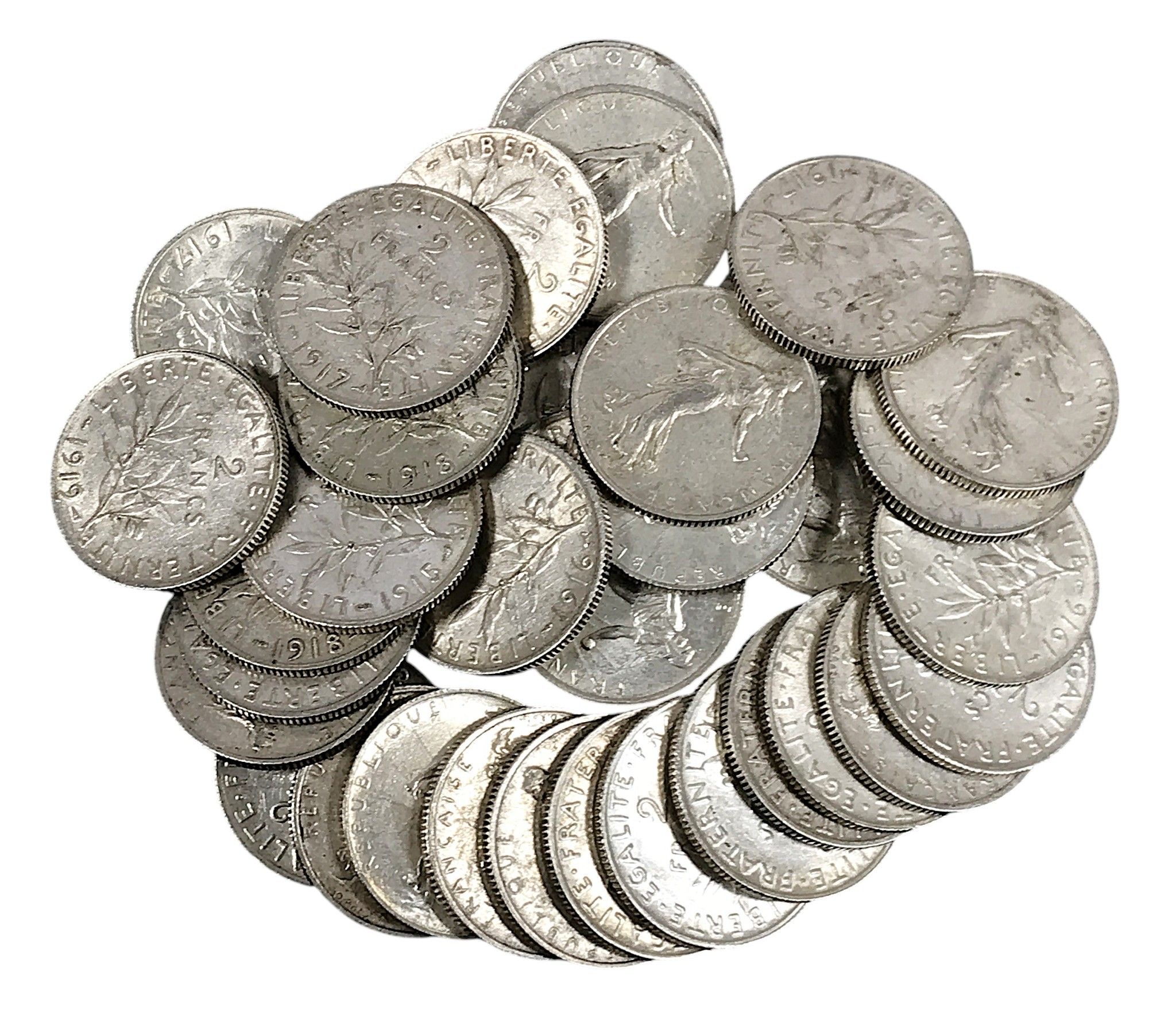 Ensemble comprenant 35 PIECES de 2 FRANCS SEMEUSE en argent,…