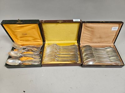 Suite de douze grands COUVERTS en argent ?, armoiries au dos…