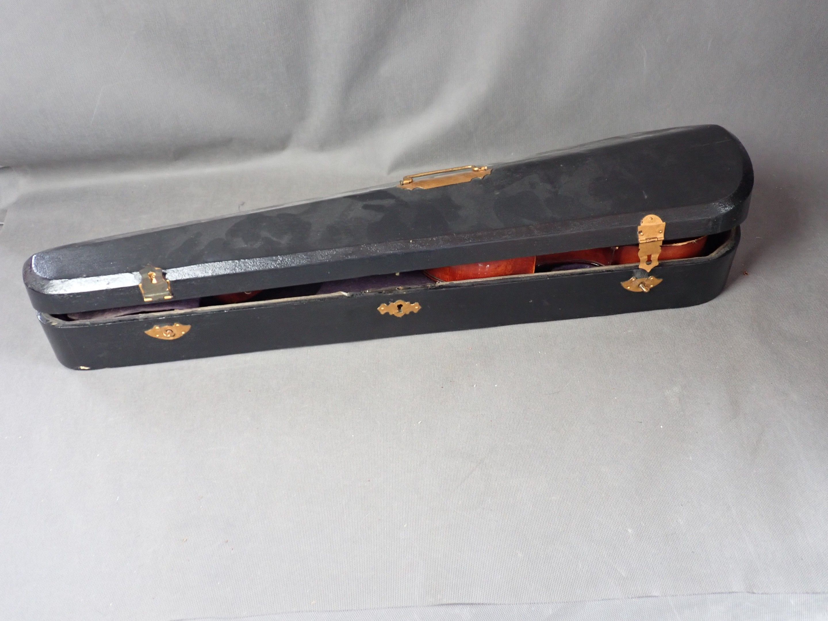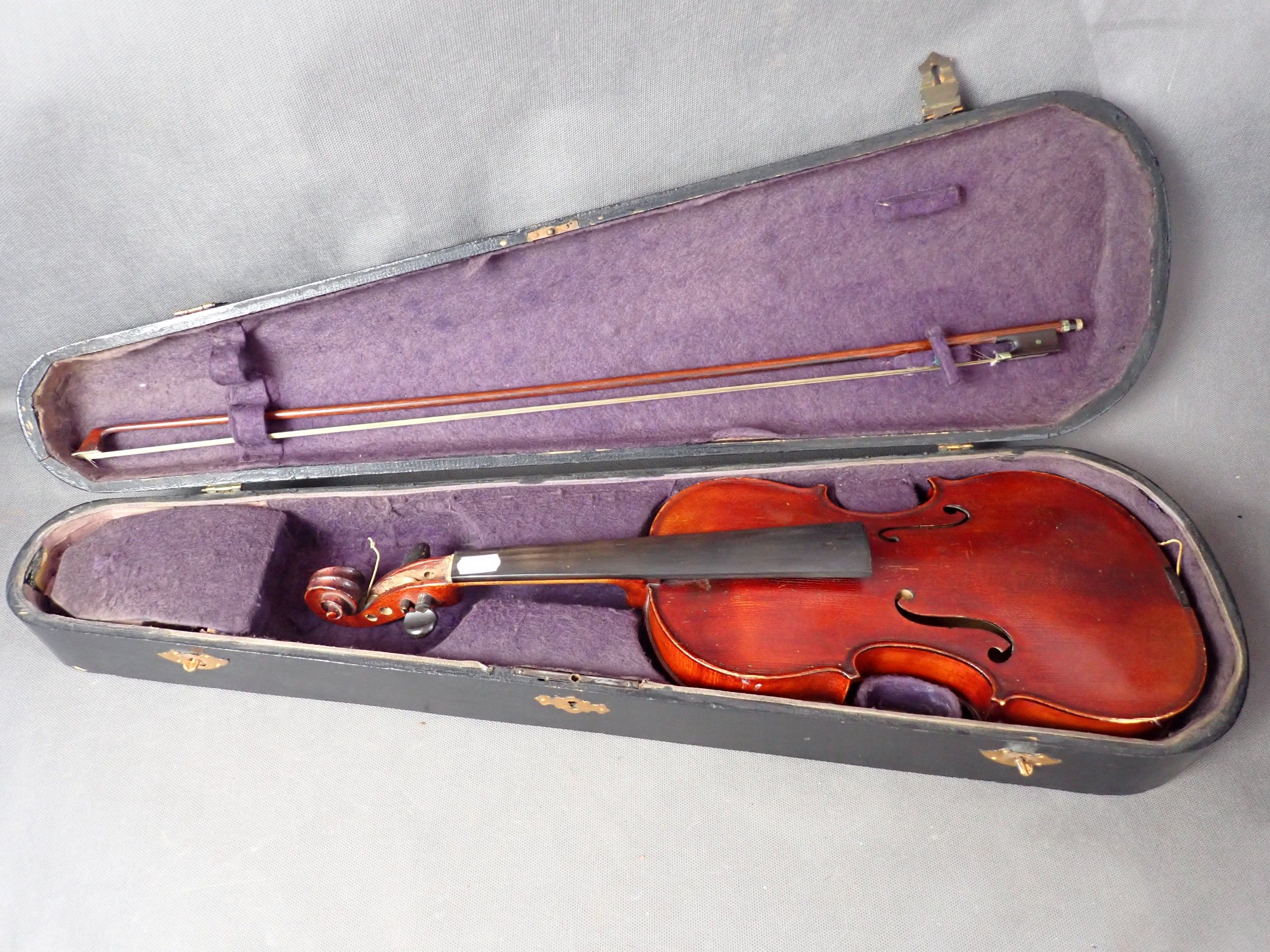 Violon "médio fino", longueur totale 54cm, on joint un archet, longueur 68cm, dans leur boîte)