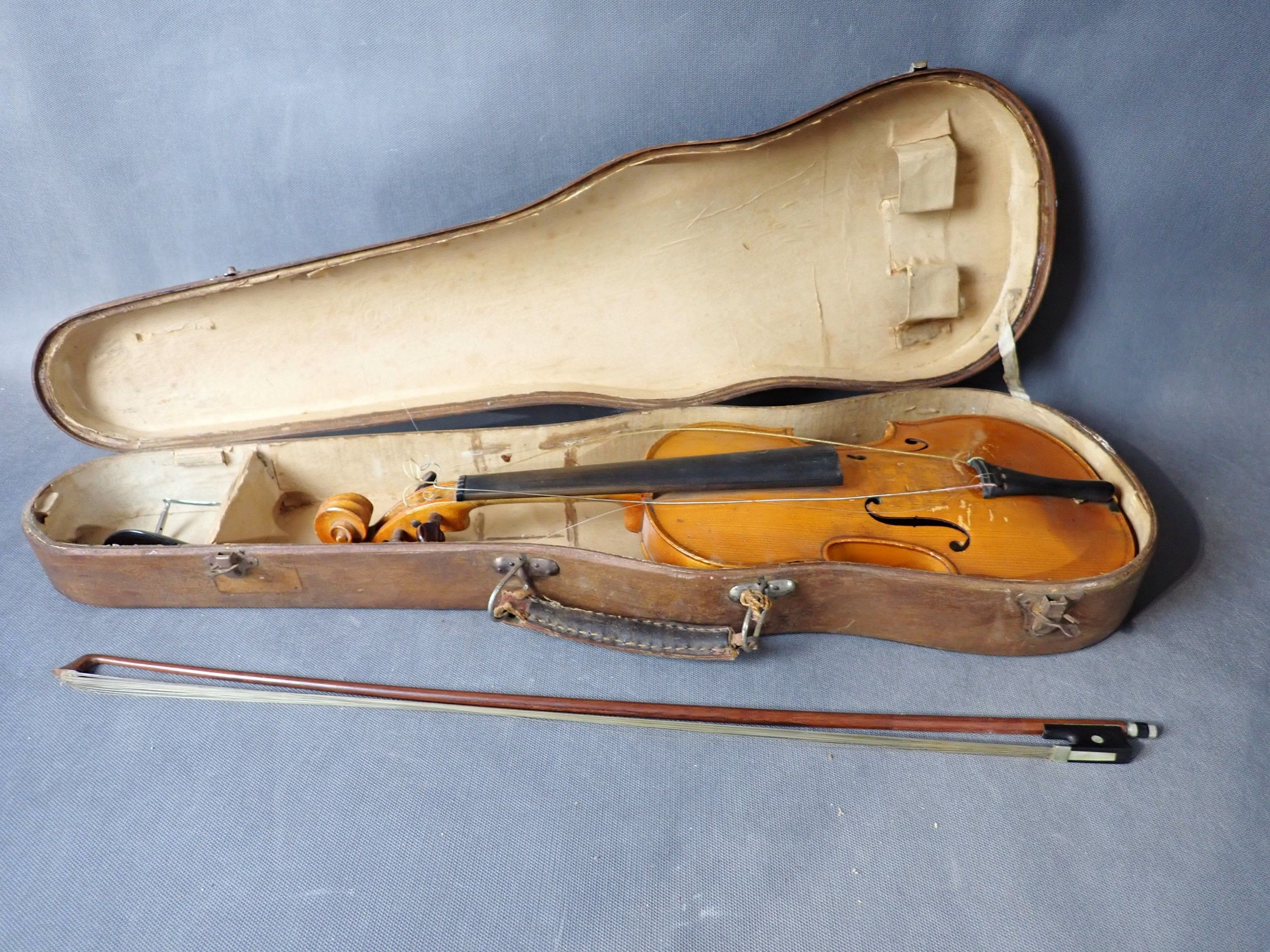 Violion MEDIO FINO, L totale : 50cm ( petits accidents ) dans son étui, on joint un archet L : 60,5 cm