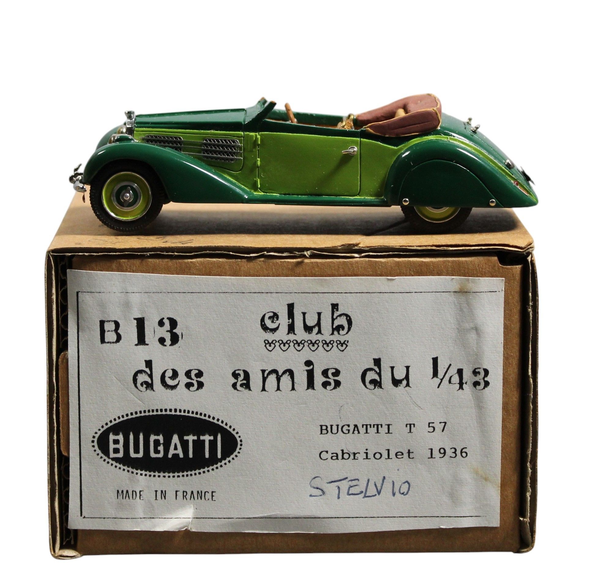 CLUB DES AMIS DU 1/43 - BUGATTI TYPE 57 CABRIOLET de 1936, ref. B13, petits accidents et manques, BOITE.
