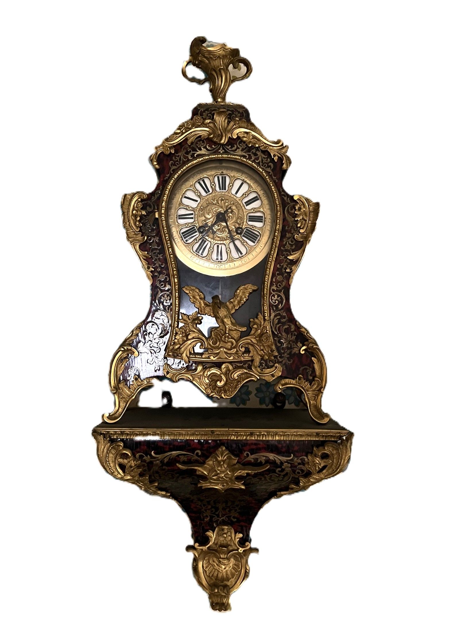Cartel et son cul-de-lampe en marqueterie dite Boulle d’écaille et