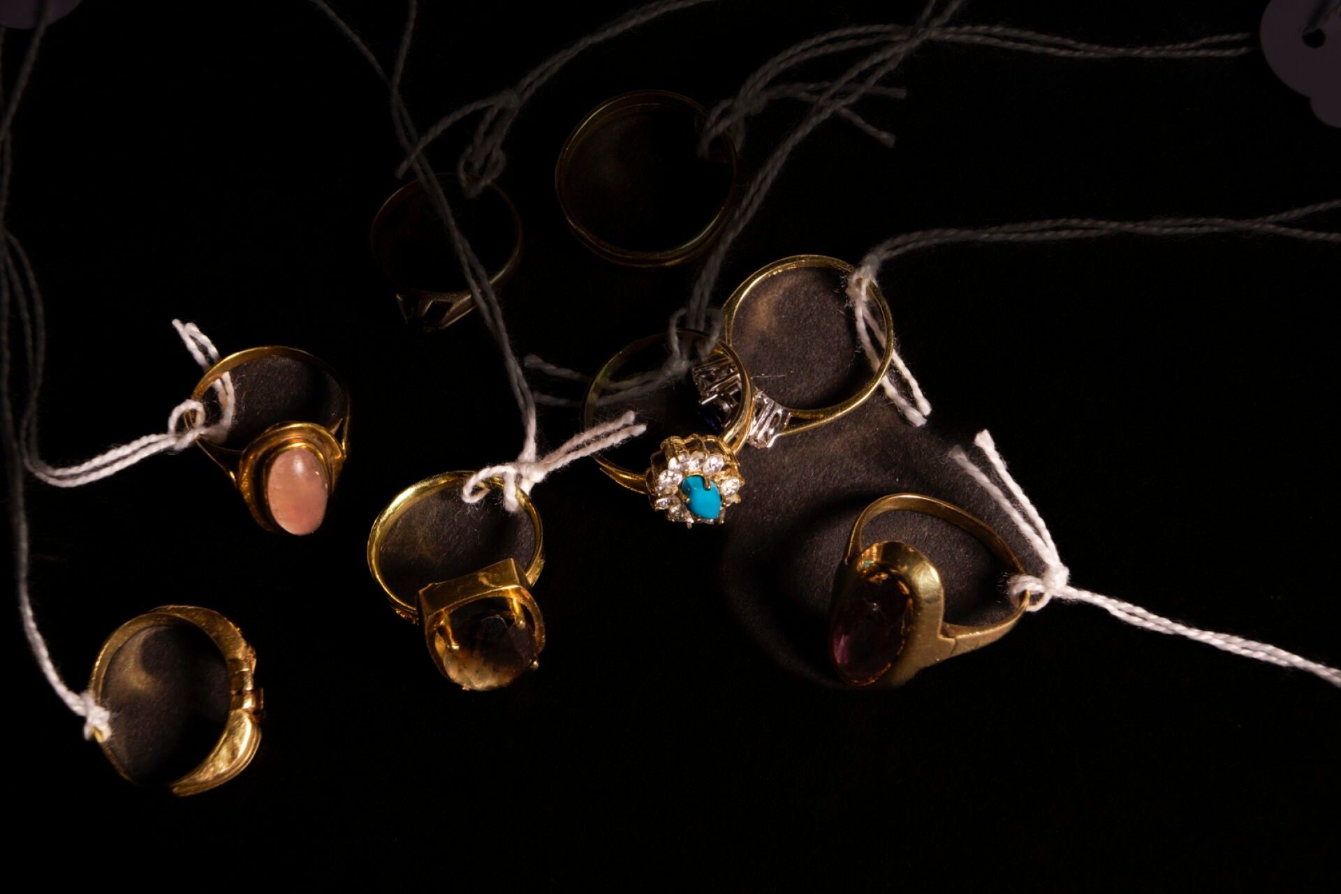 Réunion de huit bagues en or jaune et métal doré comprenant …
