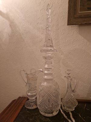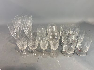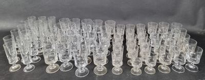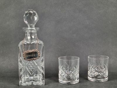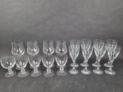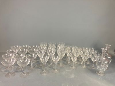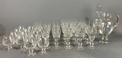 Verres, carafes et objets décoratifs en verre ou cristal taillé
