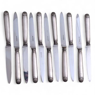 Suite de onze COUTEAUX A FROMAGE en argent fourré, la lame e…