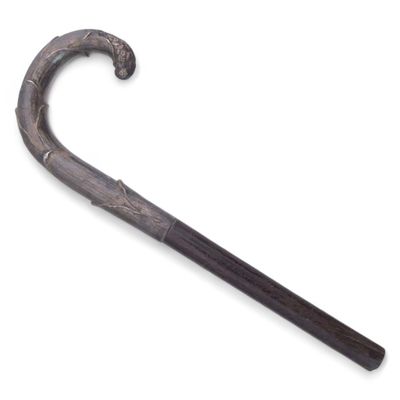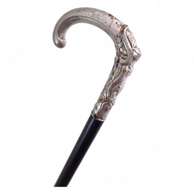 CANNE en bois, le pommeau en argent à décor Art Nouveau d'un…