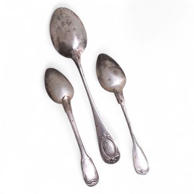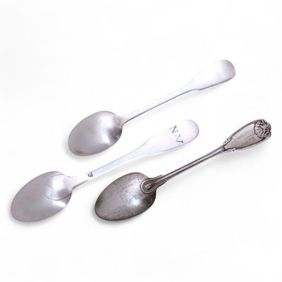 CUILLERE A DESSERT et deux CUILLERES A THE en argent, différ…