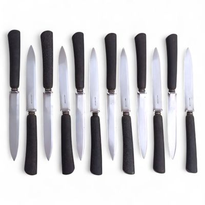 Suite de douze COUTEAUX DE TABLE, les manches en bois, la la…