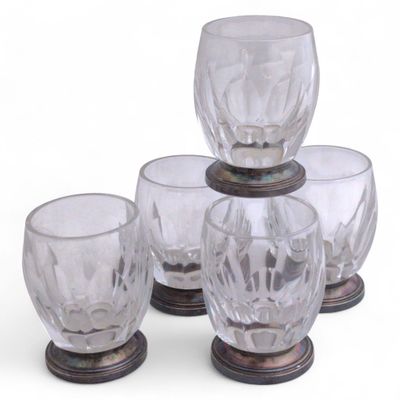 Suite de cinq VERRES en cristal taillé et argent Minerve.