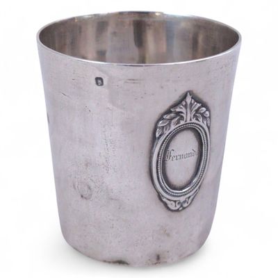 TIMBALE droite en argent uni, chiffrée sous le col Paris, 18…