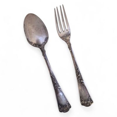COUVERT en argent, modèle feuillagé, chiffré Minerve.