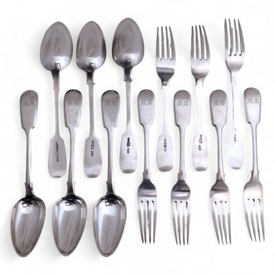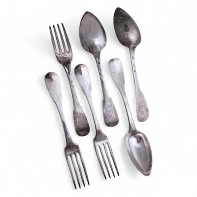 Suite de six COUVERTS en argent (84 zolotniks), chiffrés