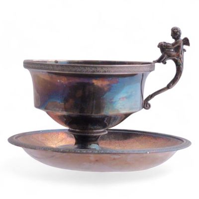 TASSE et sa SOUCOUPE en argent reposant sur un piédouche, le…