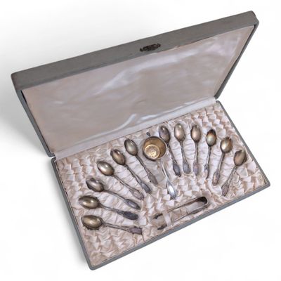 NECESSAIRE A THE en argent et vermeil, comprenant douze cuil…