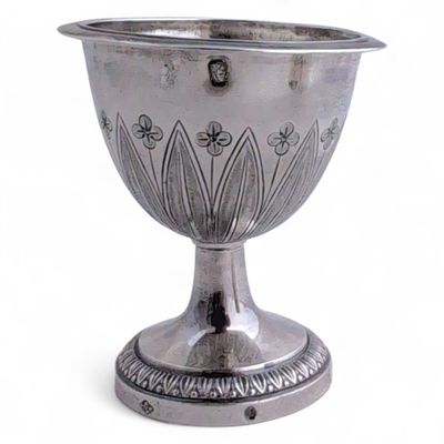 COQUETIER en argent reposant sur un piédouche à décor d'une …