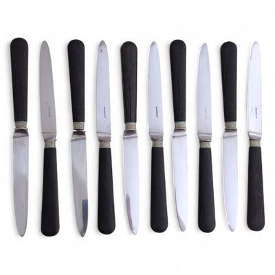 Suite de dix COUTEAUX A FROMAGE, les manches en bois, la lam…