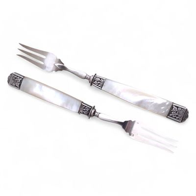 Paire de FOURCHETTES en argent (800/1000e) et nacre Minerve …