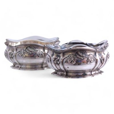 Paire de SALERONS ovale en argent à décor au repoussé, les v…