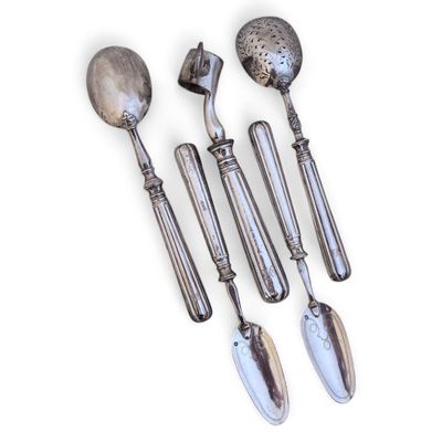 Cinq PIECES DE SERVICE en argent fourré et métal, chiffrées …