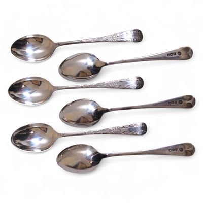 Suite de six CUILLERES A CAFE en argent, gravées Travail ang…
