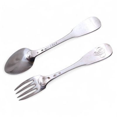 FOURCHETTE et CUILLERE en argent, modèle uniplat